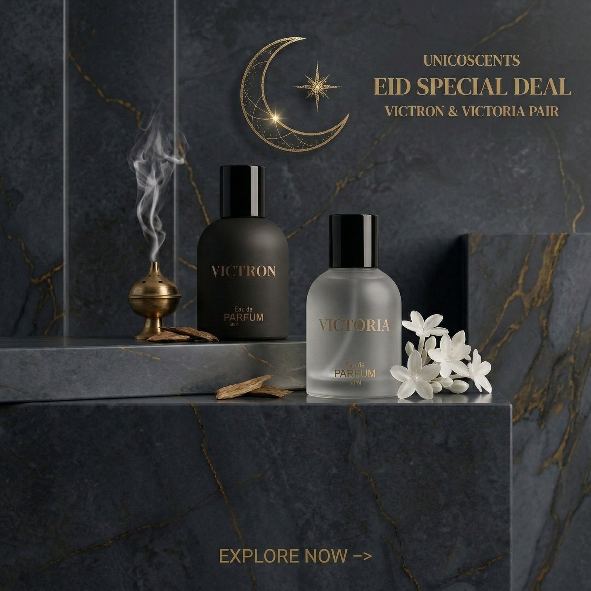 This Ramzan, elevate your gifting and personal fragrance collection with our most coveted pairing. The Signature Duo brings together the bold, commanding presence of Victron and the ethereal, sophisticated grace of Victoria. Whether you are preparing for Iftar gatherings or seeking the perfect Eid gift, this duo defines "Distinctive Elegance."